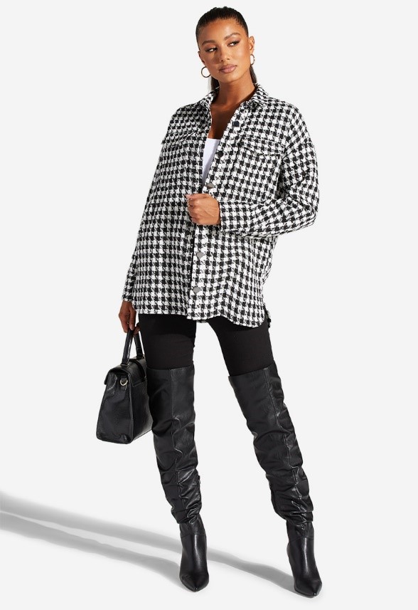 SHOEDAZZLE- Houndstooth Shacket- $62.95 on sale for $42.95 https://www.shoedazzle.com/products/HOUNDSTOOTH-SHACKET-CA2044448-2909